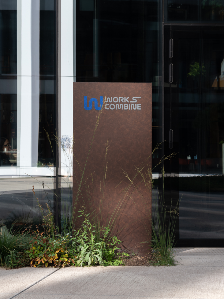 심벌마크는 웍스컴바인 CI디자인 시스템의 가장 중요한 요소로, 사람들의 행동을 데이터화 하고, 사람들을 이어주는 서비스를 만들어가는 의미의 연결과 통합을 의미한다. W의 원형 Motif에는 다양한 브랜드를 결합과 확장을 시도하는 웍스컴바인이 지향하는 철학이 담겨있다